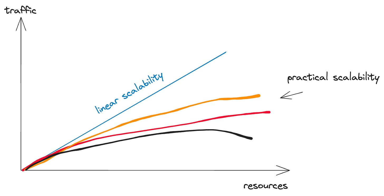 In the ever-evolving world of technology, system architects are continually challenged with designing systems that can handle increasing workloads and traffic while maintaining optimal performance and reliability. Generally, the most optimistic scenario we can have is linear scalability. For example, if we're to double the amount of resources, we could get a double of well-handled requests. However, in practice, linear scalability is very hard to achieve.